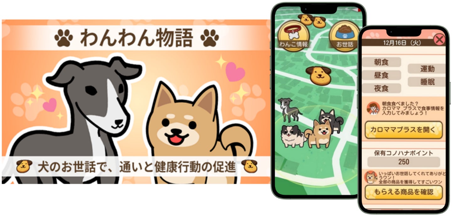 リアルワールドゲームス・Wellmira、PHR活用の介護予防サービス「わんわん物語〜カロママとトレトレで健康に!〜」の実証を1月14日(水)より開始
