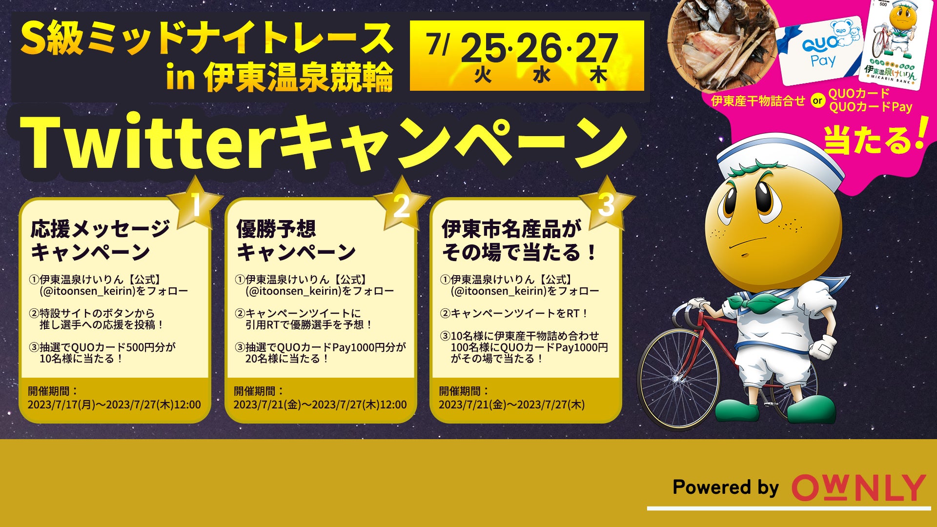 伊東温泉けいりんが「OWNLY」を活用し、3つのTwitterキャンペーンを開催。競輪初心者も楽しめる仕組みに。