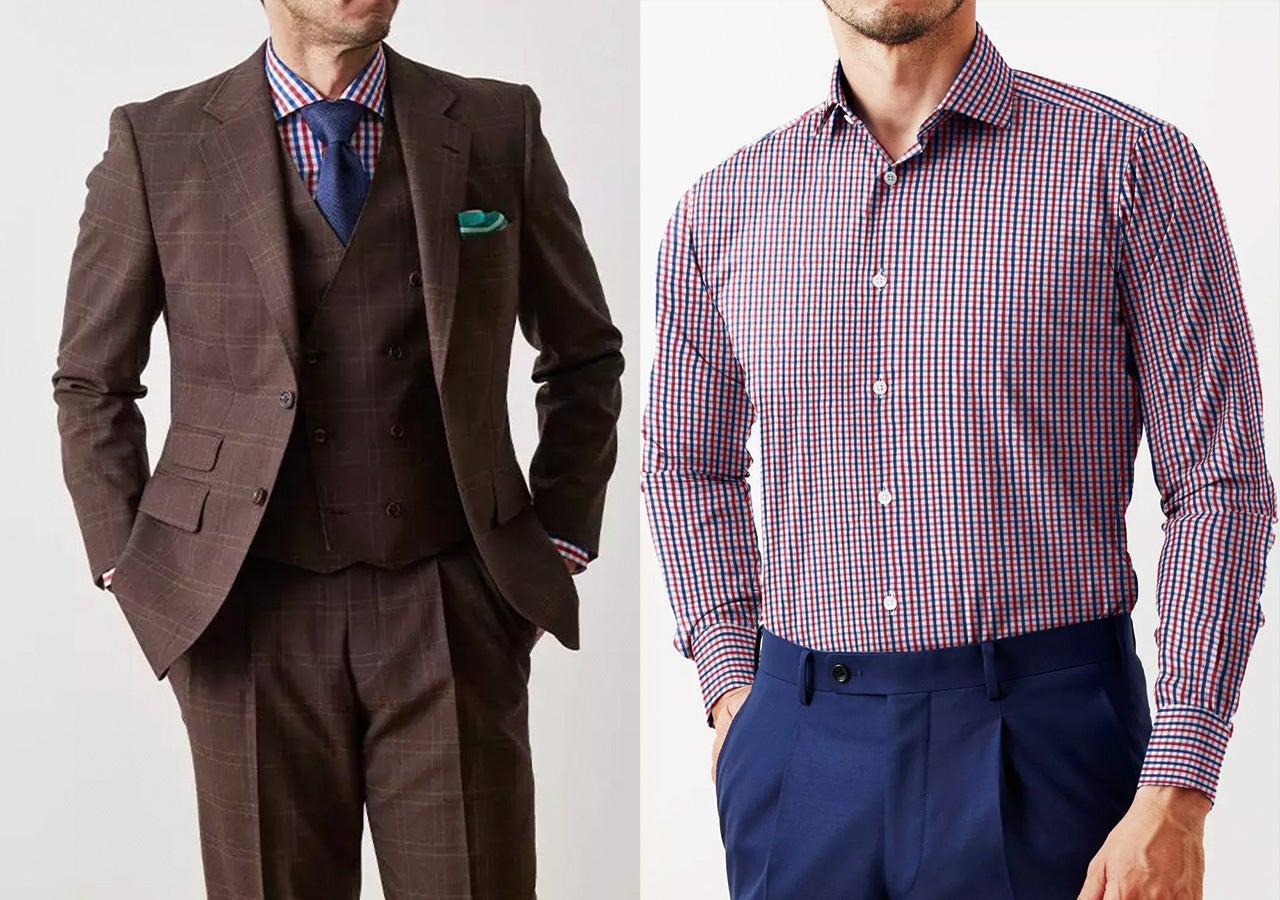 ■ブラウンチェックスーツ×チェックシャツ