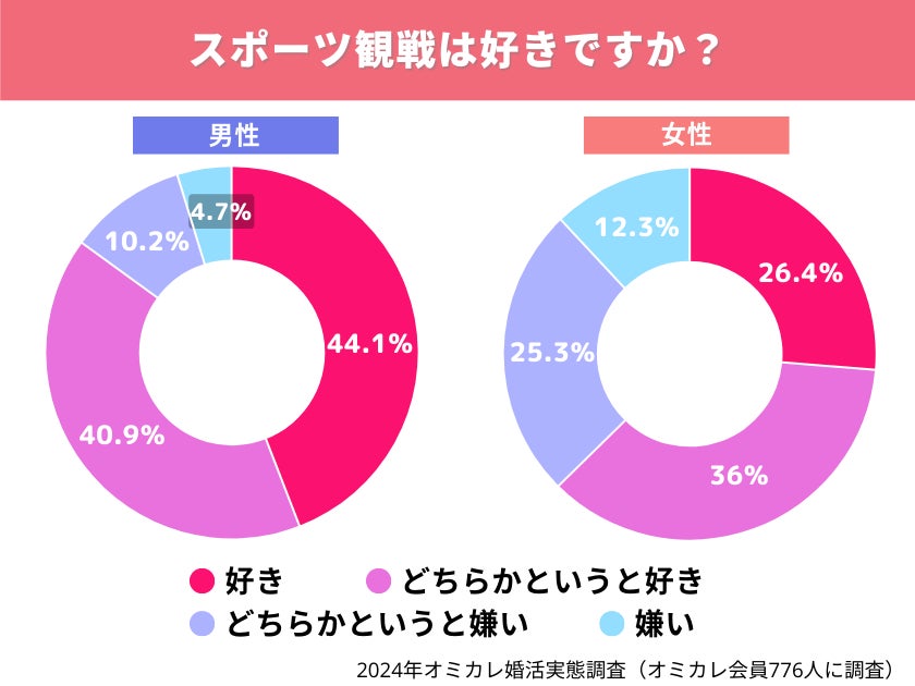 また、「スポーツ観戦は好きですか?」の質問に「嫌い」「どちらかというと嫌い」と答えた人でも55%以上が、恋人・結婚相手とのスポーツ観戦に前向きであるという結果に。
