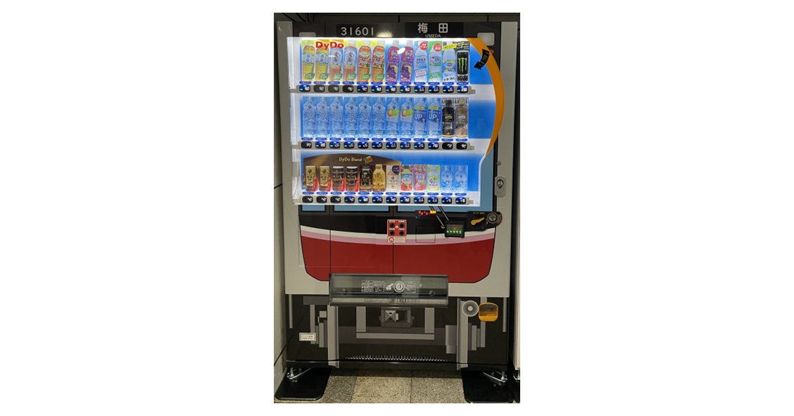 Osaka Metroの車両デザインとインバウンド対応でおもてなし 御堂筋線梅田駅にオリジナルラッピング自動販売機を設置!