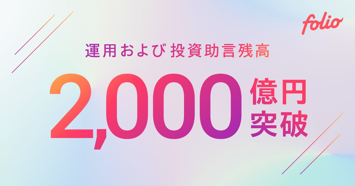 株式会社FOLIO(東京都千代田区、代表取締役:四元 盛文、以下FOLIO)は、2024年10月16日時点で、当社の運用および投資助言残高(※1)が2,000億円を突破したことをお知らせします。