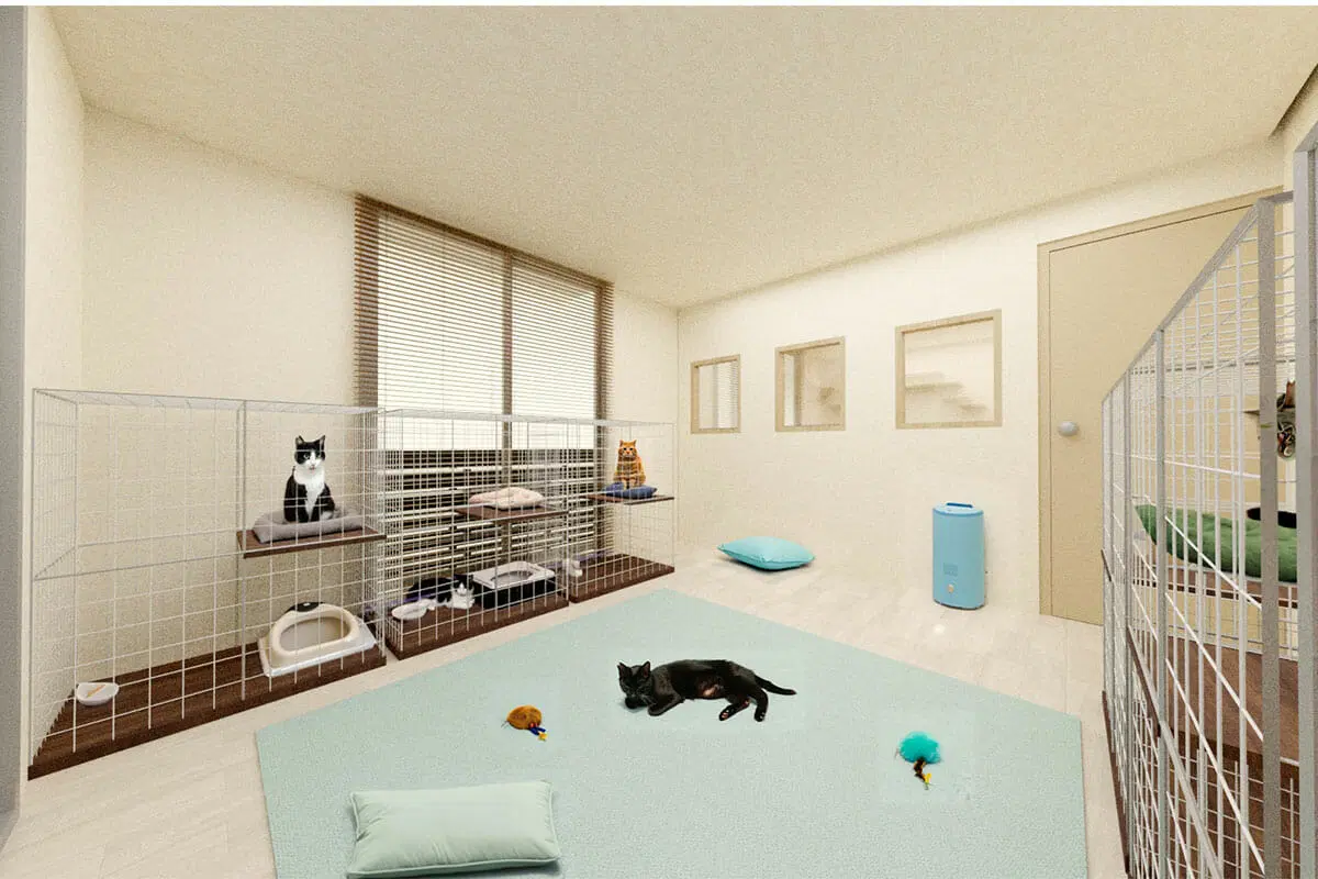 現在保護猫カフェで調子が悪くなった子は、保護猫カフェのケージや、裏のシェルターのケージ管理になっていますが、最期の緩和ケアの際には、ゆったりと最期の時をすごせるフリースペースをシェルター内につくりたいと考えています!