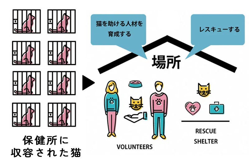 を育成し、レスキューした子たちを預かっていただく人たちを増やし、