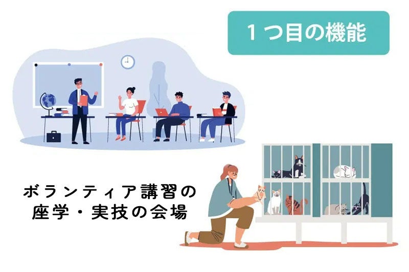 このシェルターは、単なるシェルターでなく、ボランティアの育成施設にもなります。