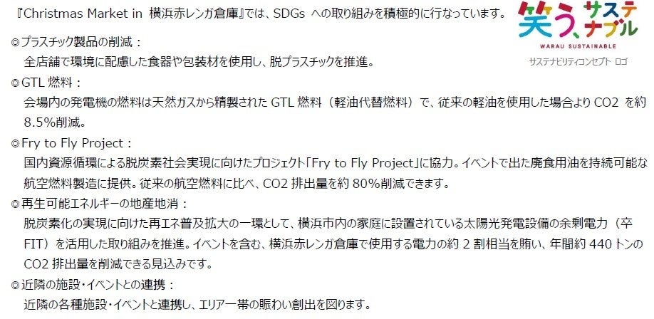 昨年は約124万人(※1)にご来場いただいた『Christmas Market in 横浜赤レンガ倉庫』は、会場の装飾等をクリスマスマーケット発祥の地・ドイツからも取り寄せており、本格的な世界観を表現した日本でも有数のクリスマスマーケットとして毎年多くのお客様にご好評いただいています。