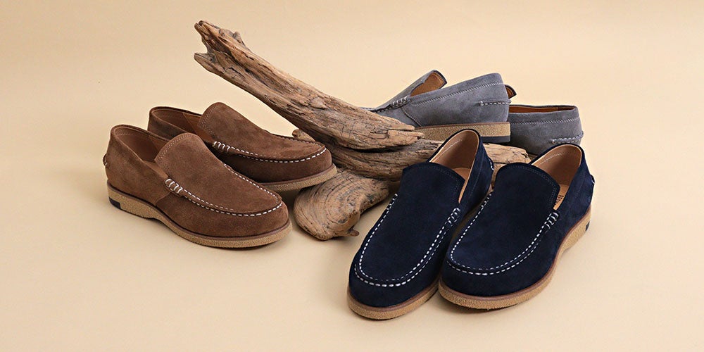 素材にこだわったソフトで軽快な履き⼼地、気取らないフォルムから感じる適度なリラックスムード。