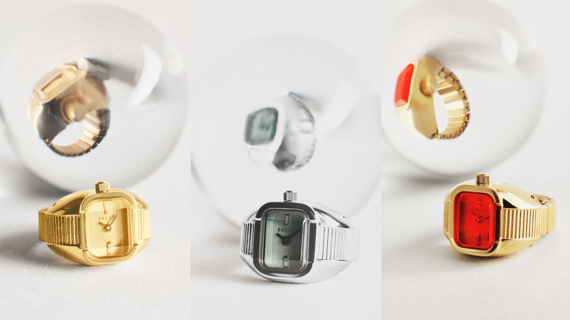 ミニマル、モダン、そしてヴィンテージのニュアンス。 BREDAがこれまで大切にしてきた美意識はそのままに、指先で時間を知るという新しい選択肢。ジュエリー好きの方にも、時計好きの方にも響くコレクションです。