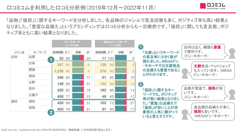 今回は、ドン・キホーテ2ブランド(ドン・キホーテ/MEGAドン・キホーテ)に寄せられた約5万件の口コミを調査しました。