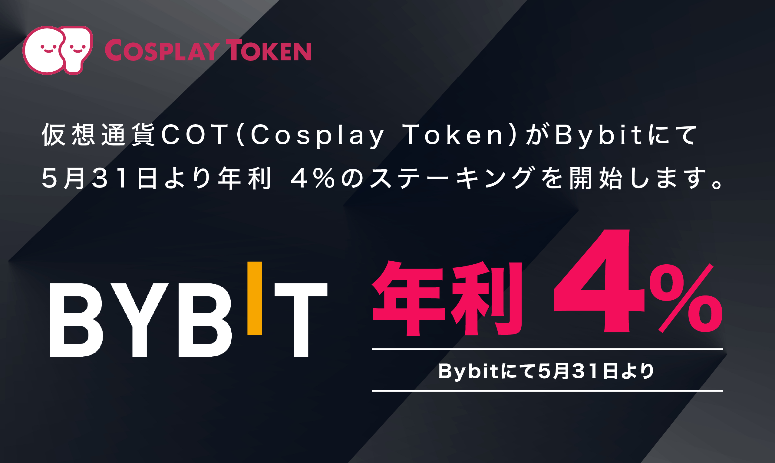 仮想通貨COT(Cosplay Token)がBybitにて5月31日より年利 4%のステーキングを開始します。