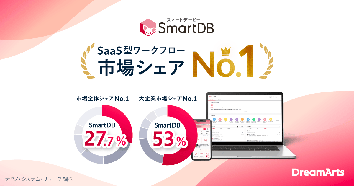 SmartDB(R)、SaaS型ワークフロー市場シェアでNo.1を獲得(※1)