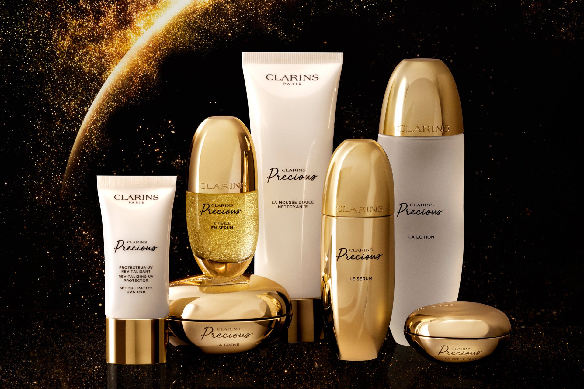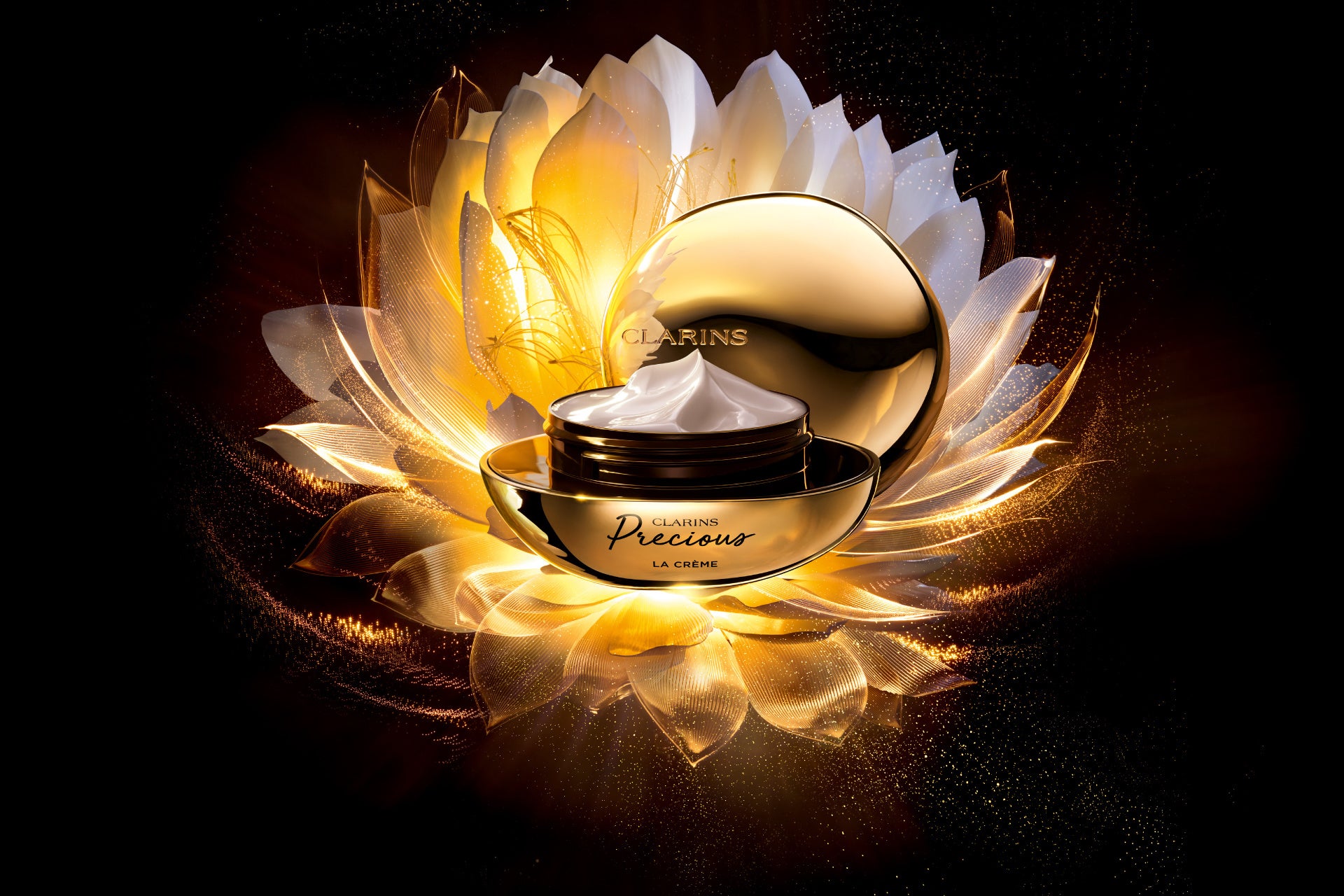 シリーズを象徴する「クラランスプレシャス ラ クレーム」は、贅沢なテクスチャーと豊富な有用成分が、肌をすべるように溶け込むラグジュアリーな体験。
