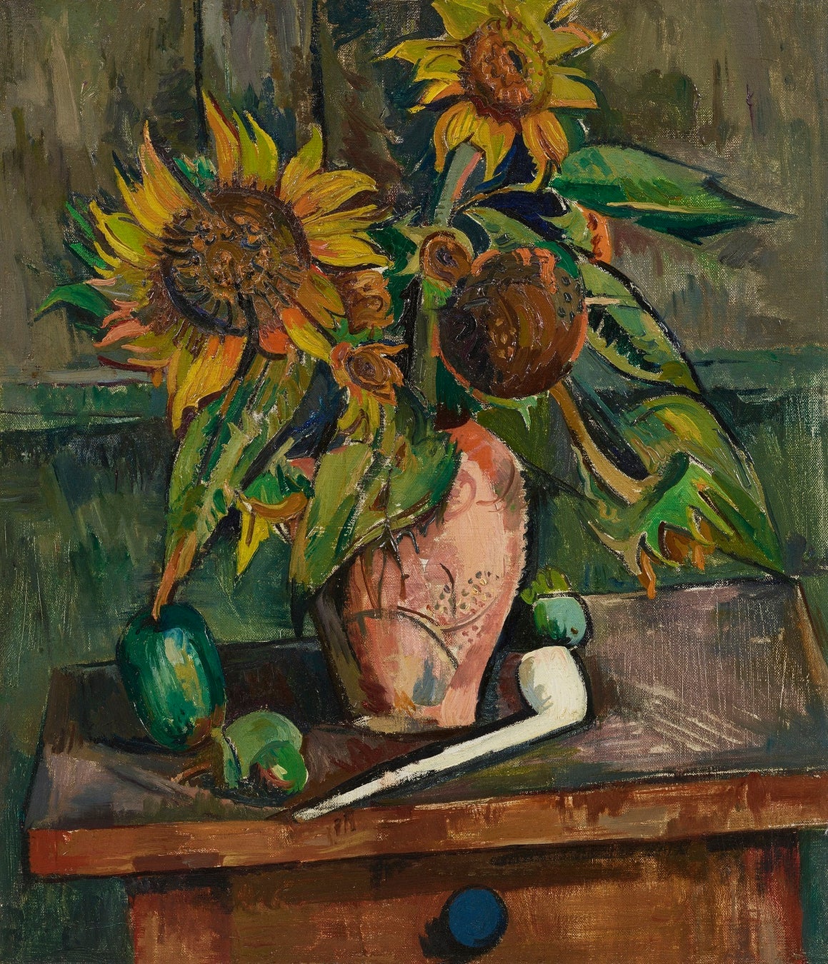 戦前の日本に招来されたゴッホの《向日葵》(1888年、戦災にて焼失)は、1920年(大正9)に神戸の実業家である山本顧彌太が購入したものであり、翌年の「白樺美術館第一回展覧会」で本邦初の公開となりました。肺結核で亡くなる前年に中村彝が制作した《向日葵》は、ひまわりの花の向きと配置が似通っていることから、ゴッホのこの作品を強く意識していることがわかります。その後、神戸での空襲の際に焼失するという悲劇に見舞われた《向日葵》は現在、日本における幻のゴッホ作品として知られています。