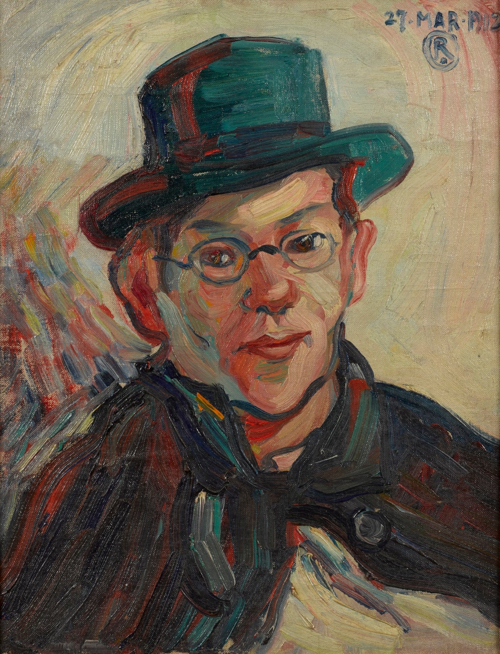 日本における西洋美術の受容において決定的な役割を果たしたのが、1910年(明治43)に創刊された文芸雑誌『白樺』です。ルネサンスからポスト印象派まで、さまざまな時代や地域の芸術を紹介したこの雑誌に魅了された画家のひとりが、岸田劉生でした。色彩の豊かさや筆触の力強さがみなぎる《外套着たる自画像》は、ゴッホの影響を如実に示した作品であり、外光派の影響から脱却した劉生が迎えた新たな時代が高らかに宣言されています。