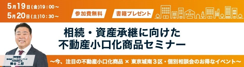 東京の城南3区エリア(世田谷区・目黒区・渋谷区)を中心に、主に新築一棟RCマンションによる不動産投資支援事業を展開する株式会社フェイスネットワーク(本社:東京都渋谷区、代表取締役社長:蜂谷 二郎、以下 「当社」という。)は、株式会社オーナーズ・スタイル(本社:東京都中央区、取締役会長:福島 優)主催の『相続・資産承継に向けた不動産小口化商品セミナー』を、5月19・20日の2日間、開催することをお知らせいたします。