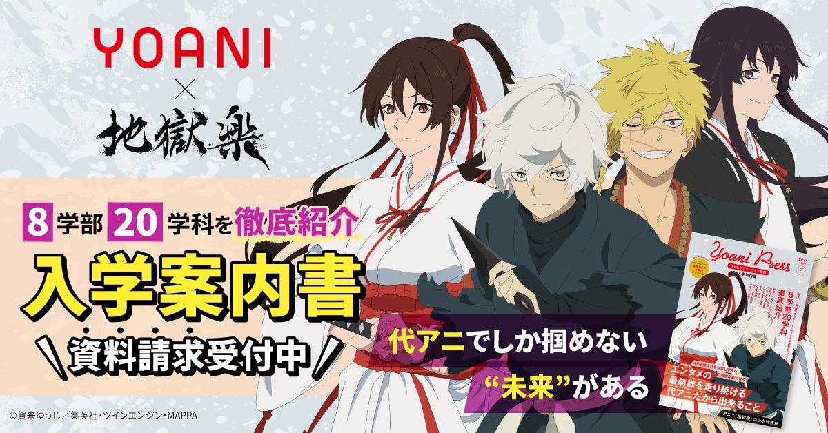 株式会社代々木アニメーション学院(本社:東京都千代田区神田三崎町1-3-9 代表取締役:橋本大輝)は、TVアニメ「地獄楽」とコラボした入学案内書の配布が決定したことをお知らせいたします。