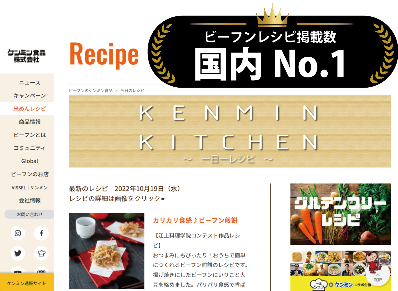 ケンミン食品公式HP掲載 レシピコンテンツ『一日一レシピ』 ビーフンレシピ掲載数国内No.1を達成