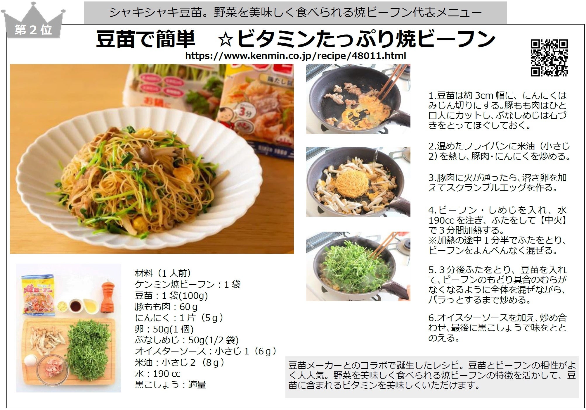 - 第2位 豆苗で簡単☆ビタミンたっぷり焼ビーフン