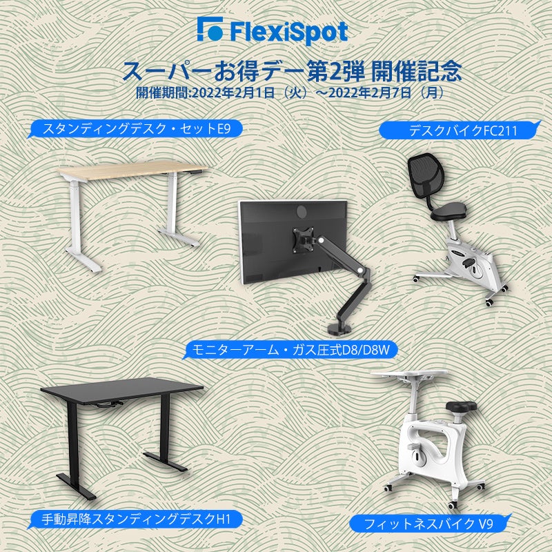 【2月初のセール】FlexiSpotスーパーお得デー第2弾が開催!最大10,000円以上OFFで人気商品も参加!