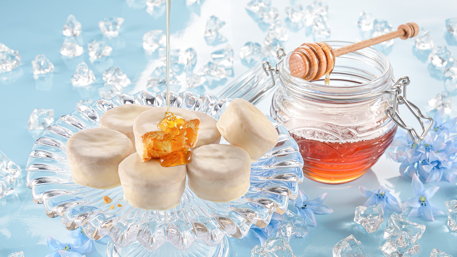 ホワイトチョコでコーティングし、さらに口どけよく仕上げました。
