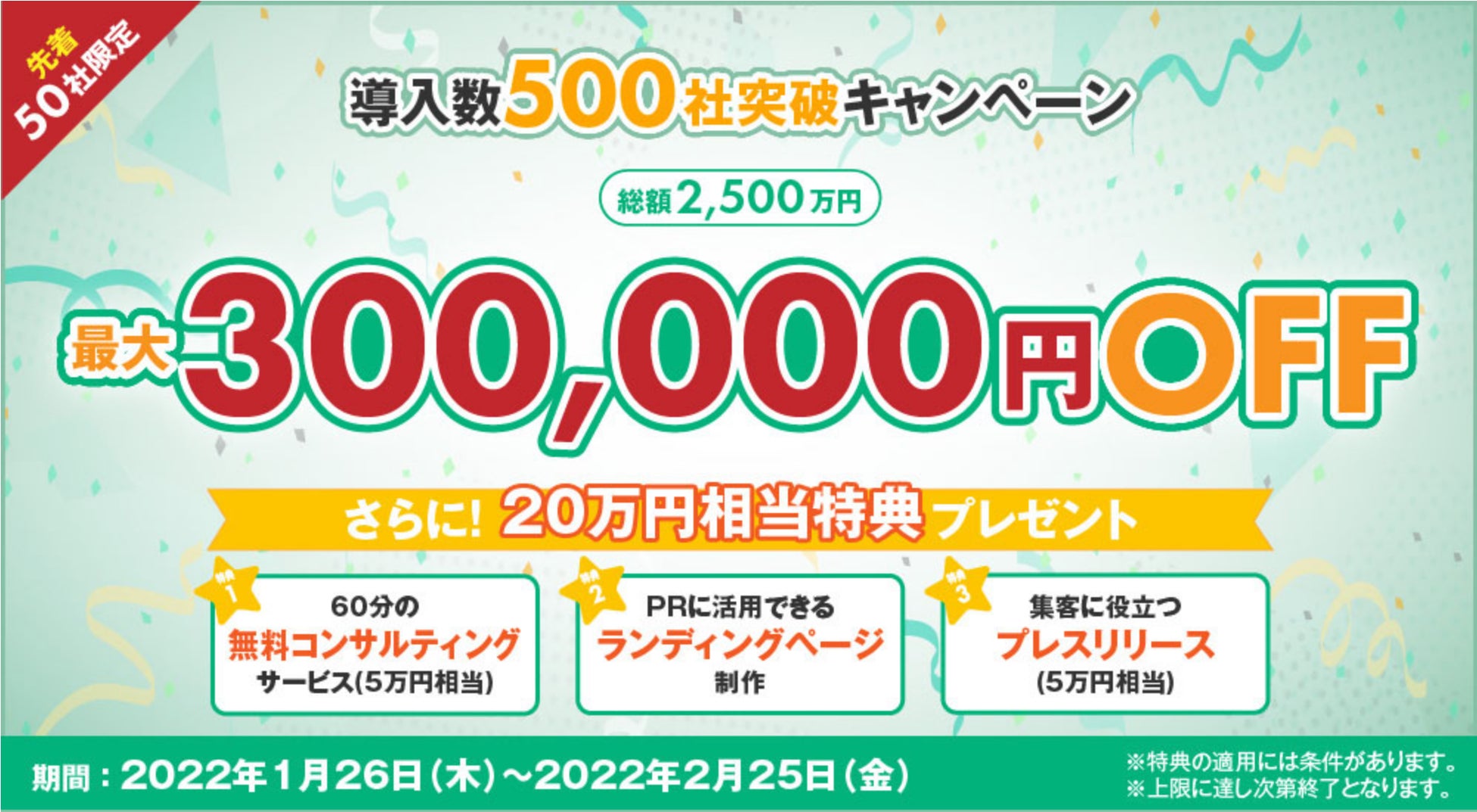 “導入数500社突破キャンペーン”は2月25日までの期間限定となりますので、ぜひこの機会にご検討ください。