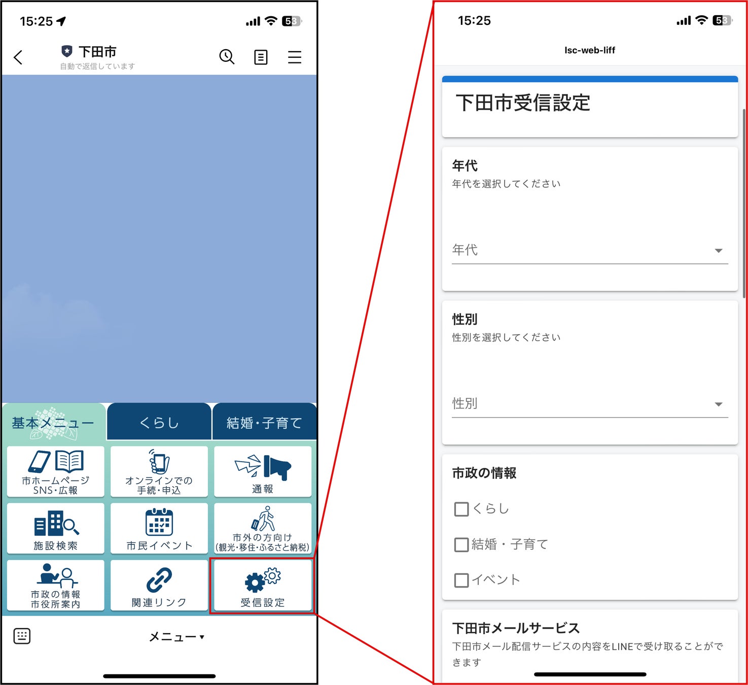 下田市LINE公式アカウントのリニューアルにあたり、プレイネクストラボが提供する「スマート公共ラボ for LINE GovTechプログラム」が採用されました。今回の開設では「基本メニュー」「くらし」「結婚・子育て」などの情報カテゴリーについてもチャットボット機能を実装した他、情報発信がさらに効果的にできるように「セグメント配信機能」を導入。様々な市政情報を届けることが可能となりました。