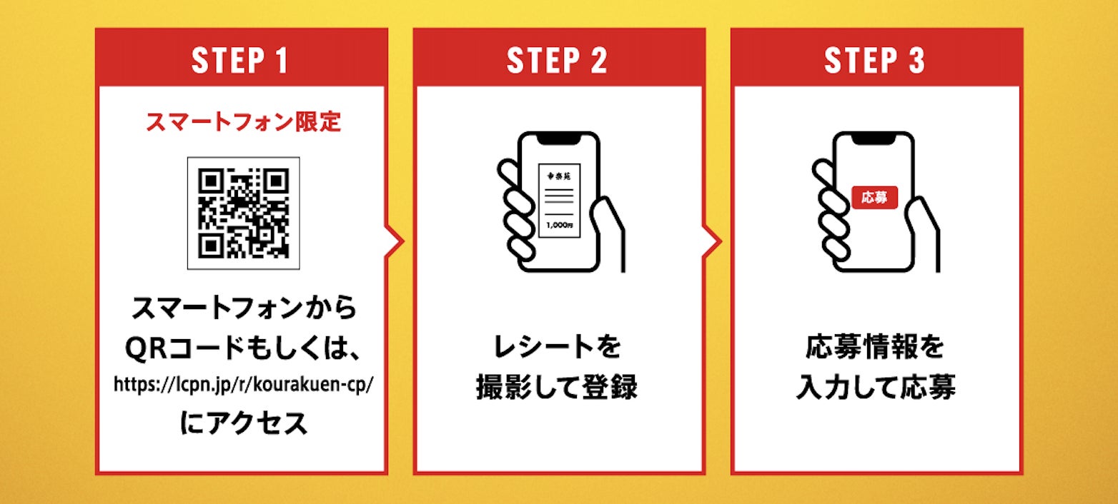 応募方法 :1.スマートフォンからQRコードもしくはhttp://lcpn.jp/r/kourakuen-cp/にアクセス