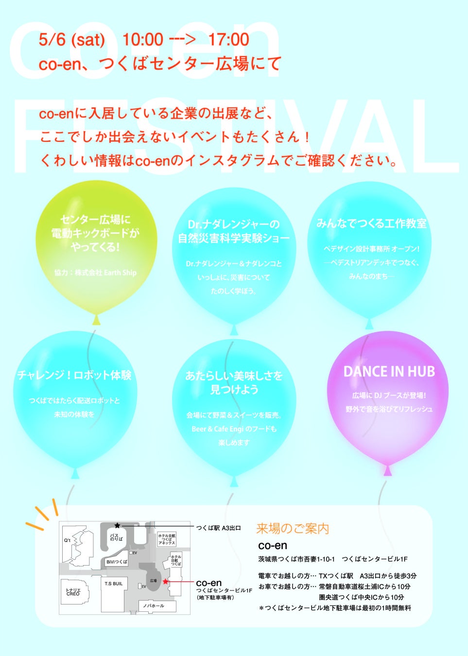 主 催:co-enまつり実行委員会(事務局:つくばまちなかデザイン㈱)