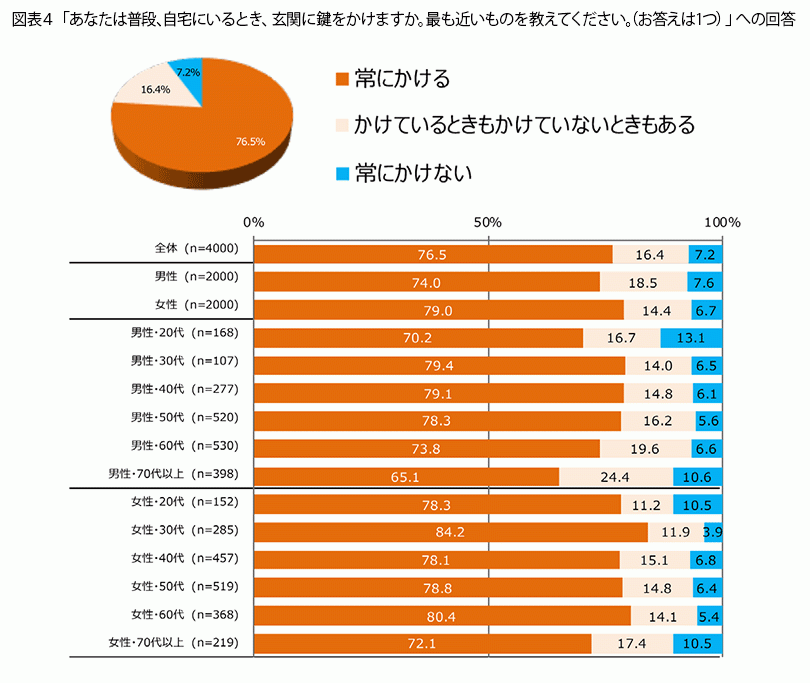 20代女性「玄関、常に施錠しない」が1割! ~人や地域によってバラバラな防犯意識~