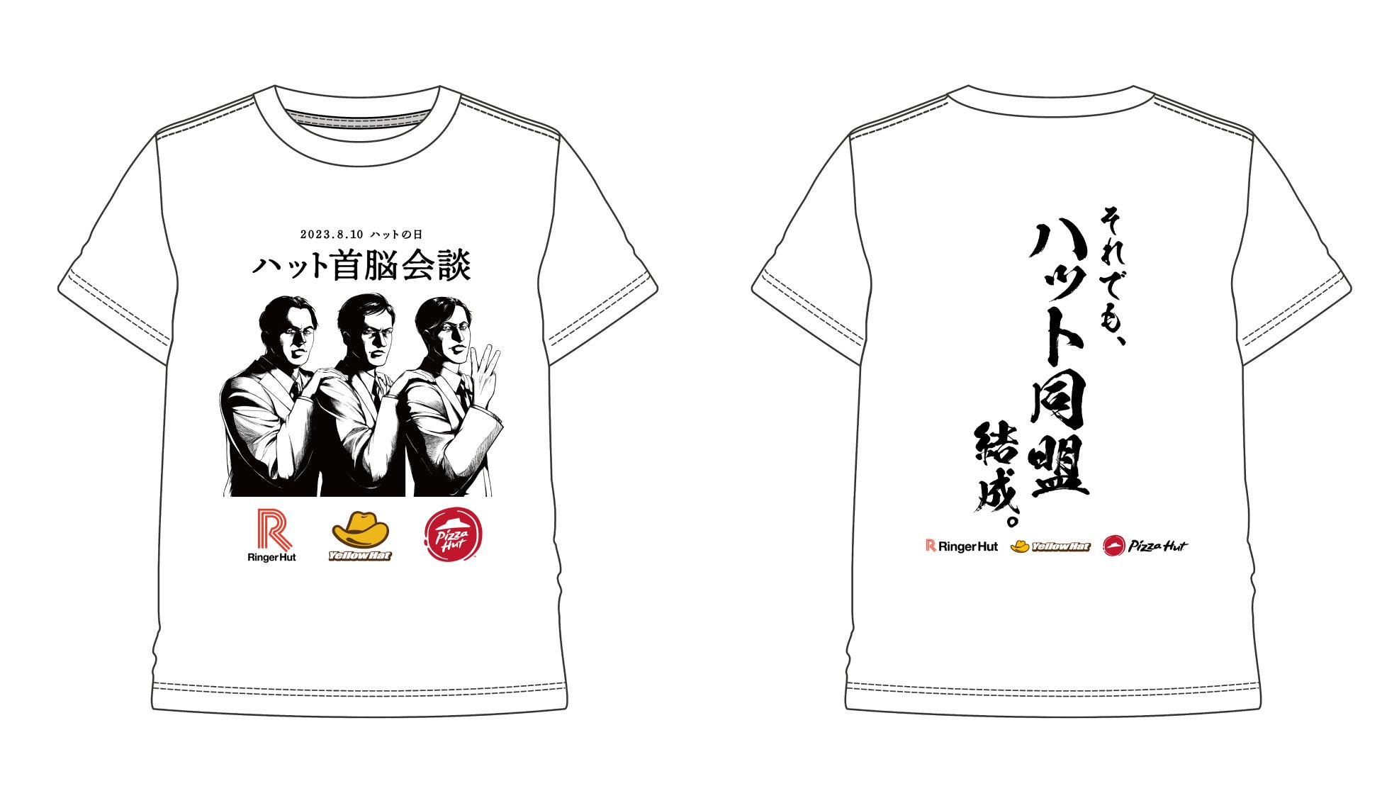 ハット首脳会談の名シーンがTシャツになって登場!各社公式Twitterアカウントをフォローし、対象のキャンペーン投稿をリツイートするだけで、「ハット3社長Tシャツ」を抽選で合計30名様(各社アカウント毎に10名様ずつ)にプレゼントします。