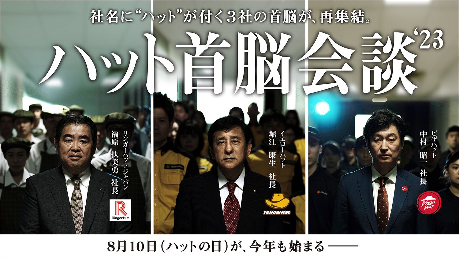 【8月10日は“ハットの日”】ハット企業(ピザハット・イエローハット・リンガーハット)コラボ2年目の今年は、各社社員も登場で一触即発の危機?!「ハット首脳会談2023 廊下篇」8月3日(木)公開!