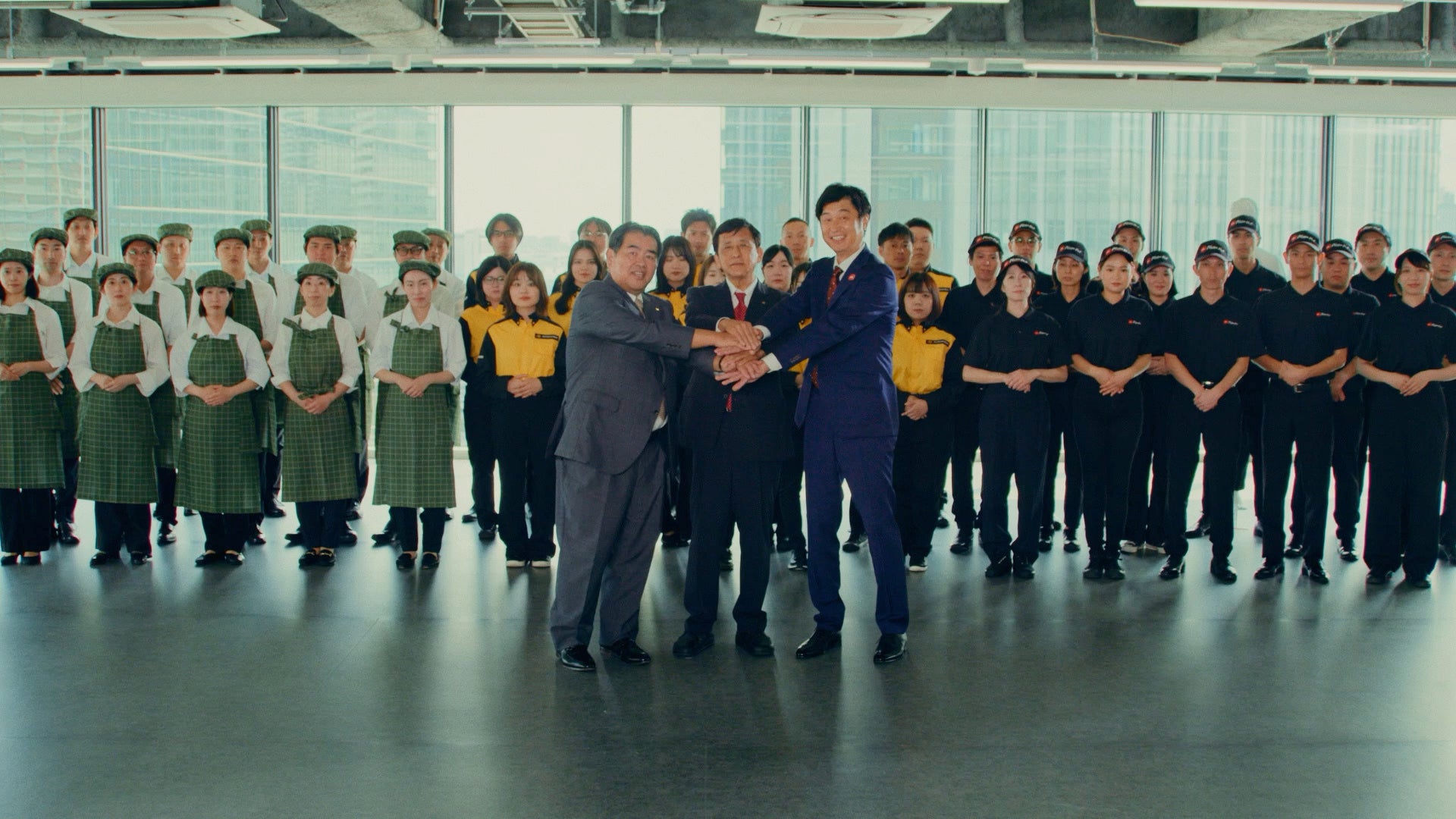 「ハット首脳会談2023」では、各社の社長だけではなく、社員もそれぞれの制服を着用して集結。撮影の待機中、リンガーハットジャパン福原社長がお茶目な一面をみせ、リンガーハット社員が和やかな雰囲気になる場面や、緊張気味のイエローハット堀江社長に、リンガーハットジャパン福原社長が肩を揉んであげるなど、「ハット同盟」らしい?!仲の良い姿が印象的でした。撮影終了後、ピザハット中村社長が社員一人一人に「お疲れ様。ありがとう!」と声をかけるなど、社員を気遣う社長の姿が垣間見える終始和やかな撮影現場となりました。