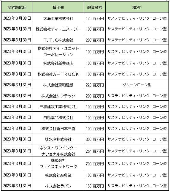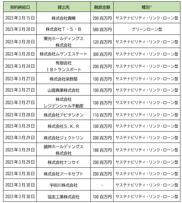 ※ サステナビリティ・リンク・ローン型における数値目標、グリーンローン型における資金使途等