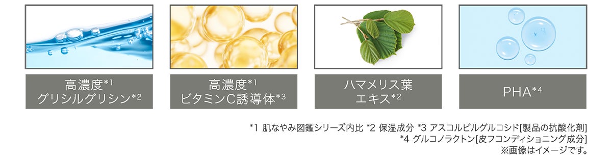 グリシルグリシン*4、ビタミンC誘導体*5を高濃度*6配合。毛穴肌のひきしめ&黒ずんだくすみ*2毛穴をケアしながら、つるんとした小鼻へ導きます。