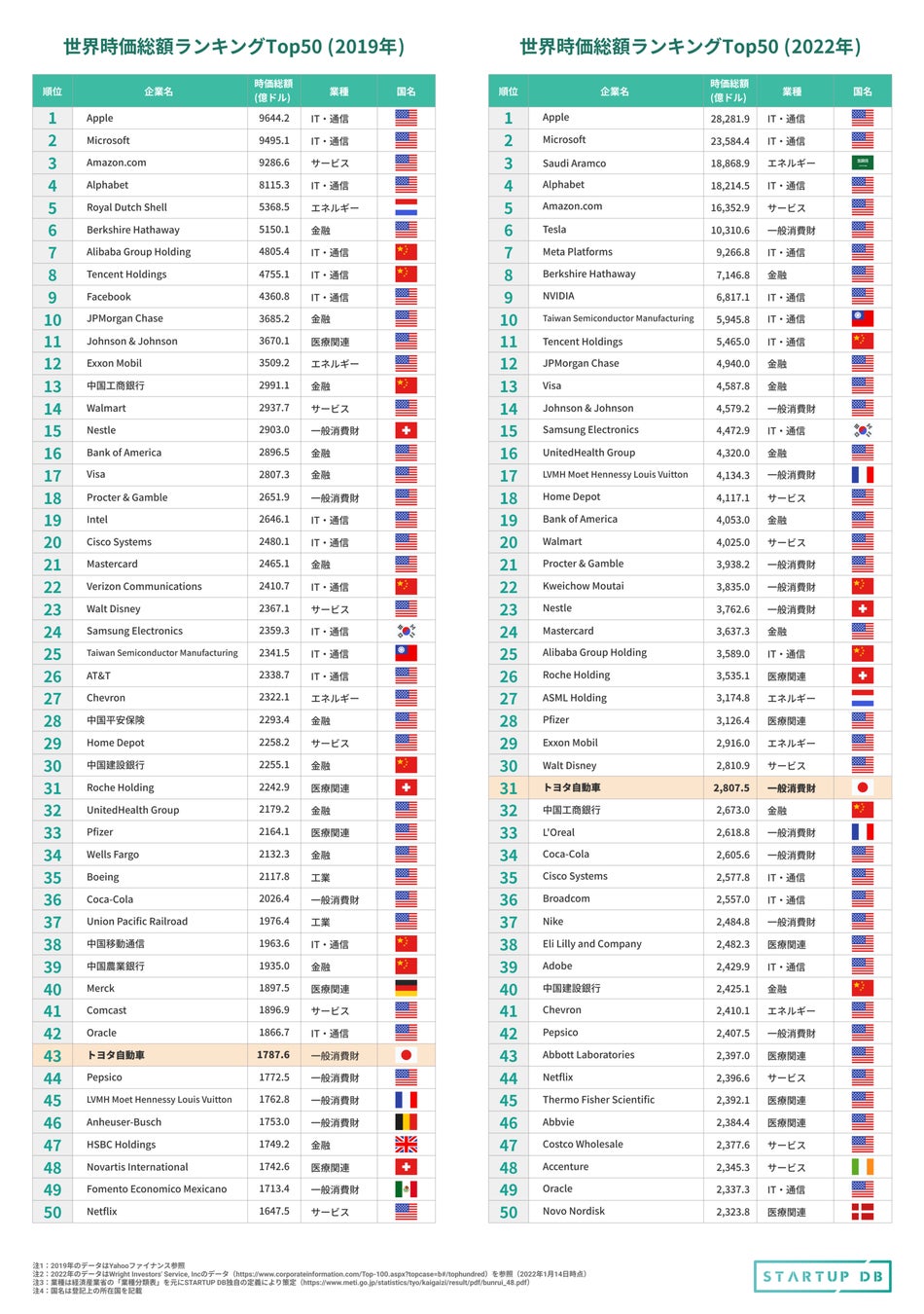 レポート記事:STARTUP DB (https://media.startup-db.com/research/marketcap-global-2022)