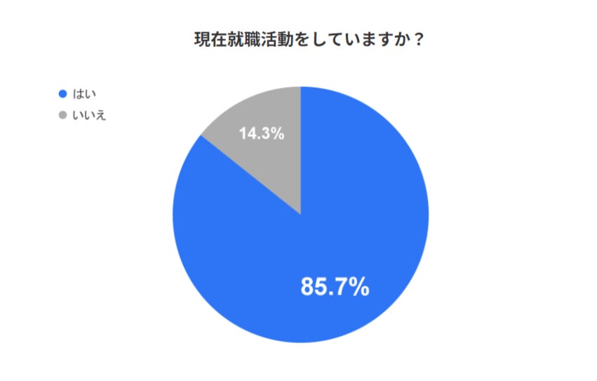 一方、「現在就職活動をしていますか?」という質問に対し、「就職活動をしている」と回答した学生は85.7%でした。1社以上の内定を持つ学生が半数以上を占める中、就職活動を継続し、入社先の企業をじっくり見極めたい考えがうかがえる結果となりました。