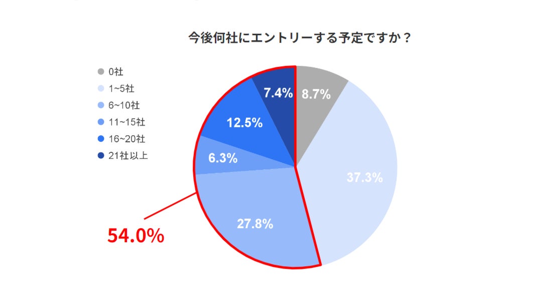 「今後のエントリー予定」について尋ねたところ、「6社以上」が54.0%を占めました。今後も企業を見極めながらじっくり入社先企業を検討したい学生が多数いることがうかがえます。
