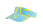 書道家 「万美」 作のグラフィティアート風「DESCENTE」ロゴの総柄プリントが一際目を引く サンバイザー。夏のゴルフに映えるカラーバリエーション。