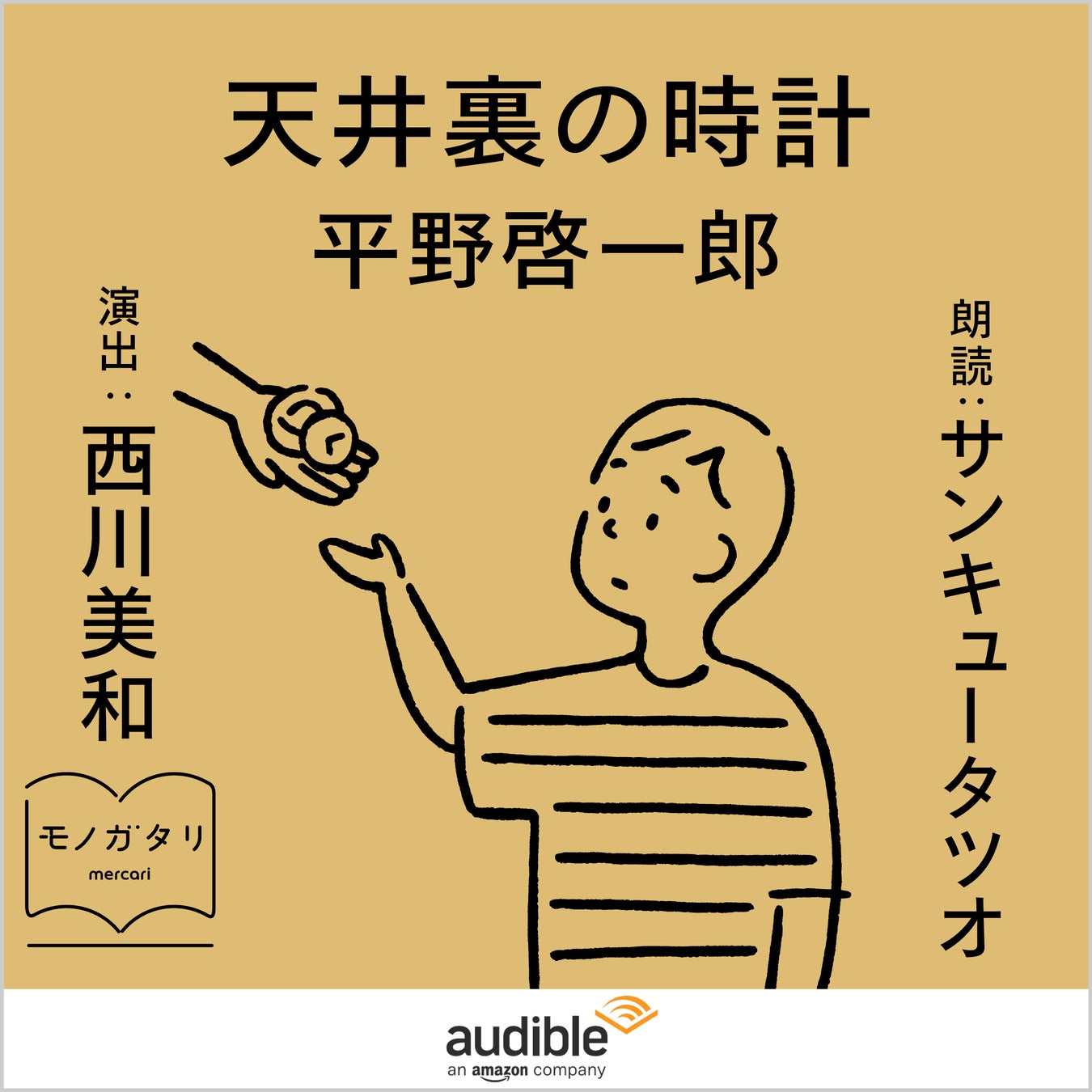 世界最大級のオーディオブック及び音声コンテンツ制作・配信サービスであるAmazonオーディブル(以下、Audible)は、「モノとの出会いと別れ」のストーリーを通じてモノの価値を伝えるプロジェクト「モノガタリ by mercari」の第三弾を音声化し、本日10月26日より「天井裏の時計」(平野啓一郎著、サンキュータツオ朗読)の独占配信を開始します。