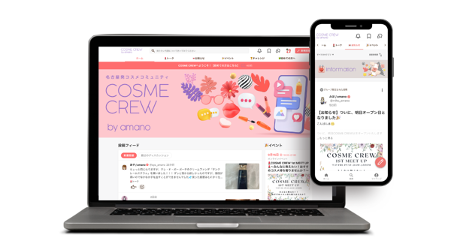 「COSME CREW by amano」は、「化粧品が好きな方同士」「化粧品が好きな方とアマノスタッフ」が繋がり、相互にコミュニケーションができるオンラインコミュニティです。化粧品好きが集まり、お気に入りのアイテムや流行のメイクなどの情報をシェアすることで、「化粧品の楽しさ」や「最先端トレンド」を感じていただけます。コミュニティ参加者限定イベントも定期的に開催し、付加価値の高い特別な体験を提供します。