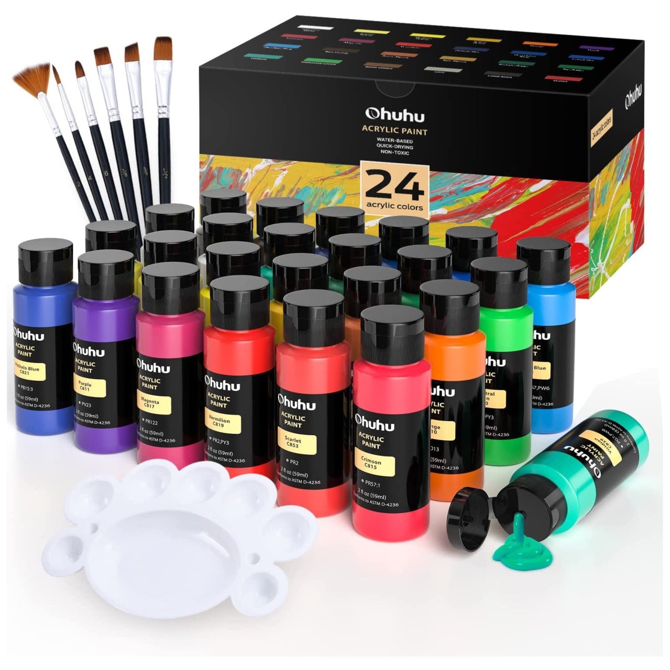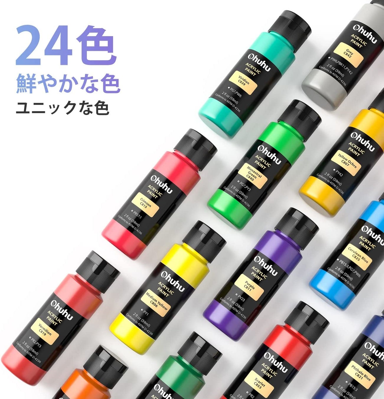 【Ohuhu】コスパ良し!ペイントブラシ&パレット付き“大容量アクリル絵具24色セット”が新登場!
