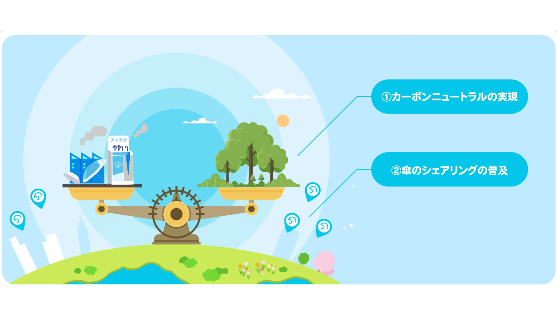 今まで社会的に大きく問題視されていなかった傘の使い捨て問題を、日本で初めて企業間が一丸となって本気で使い捨て傘ゼロを目指すアクションを開始。世界でワースト1位となっている日本の傘消費と使い捨て文化をSDGs達成期限の2030年までに脱却すべく、傘シェアの普及にスピードをあげるため大手企業各社と連携。更なる環境面(SDGs13)での貢献度を増やすため、日本政府も掲げているカーボンニュートラルを傘、傘立てのサプライチェーンにて実現しています。