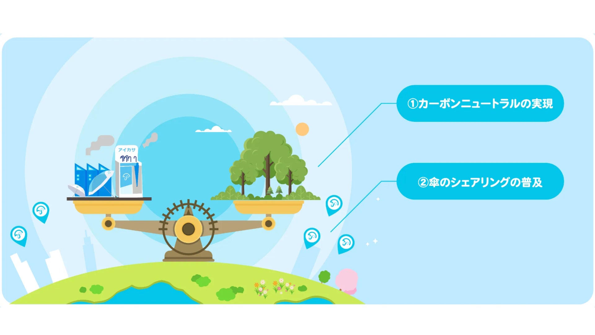 2020年東京都主催「世界発信コンペティション」サービス部門優秀賞、2021年環境省主催「グッドライフアワード」ユース部門環境大臣賞、2022年「グリーン購入大賞」大賞を受賞し、傘がないことによって移動ができないことや濡れて不快になることを無くし、ひとりひとりが過ごしたい今を過ごせるよう「雨の日のプラットフォーム」としてのインフラを構築、傘をシェアし人にも地球にも愛ある社会づくりを構築しております。