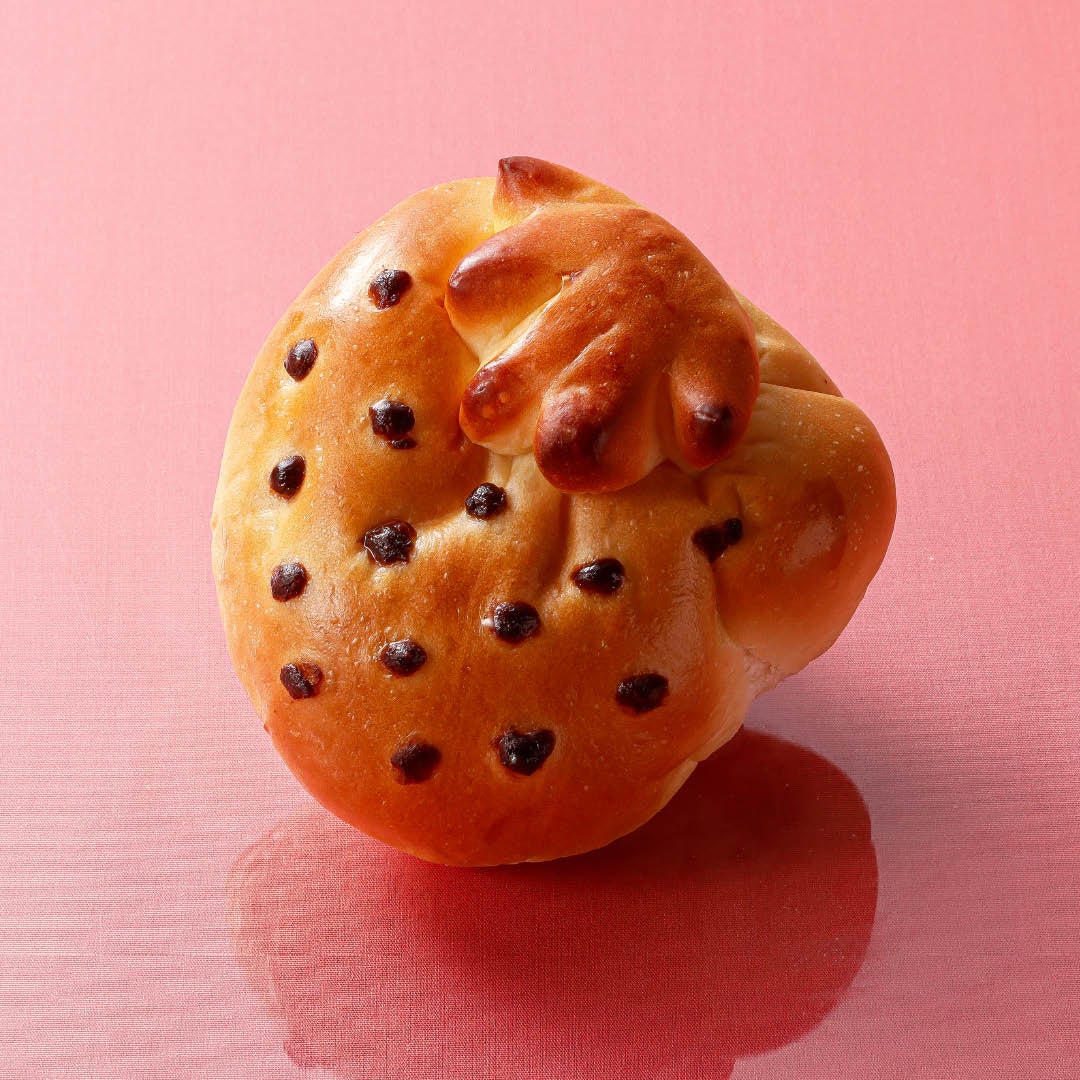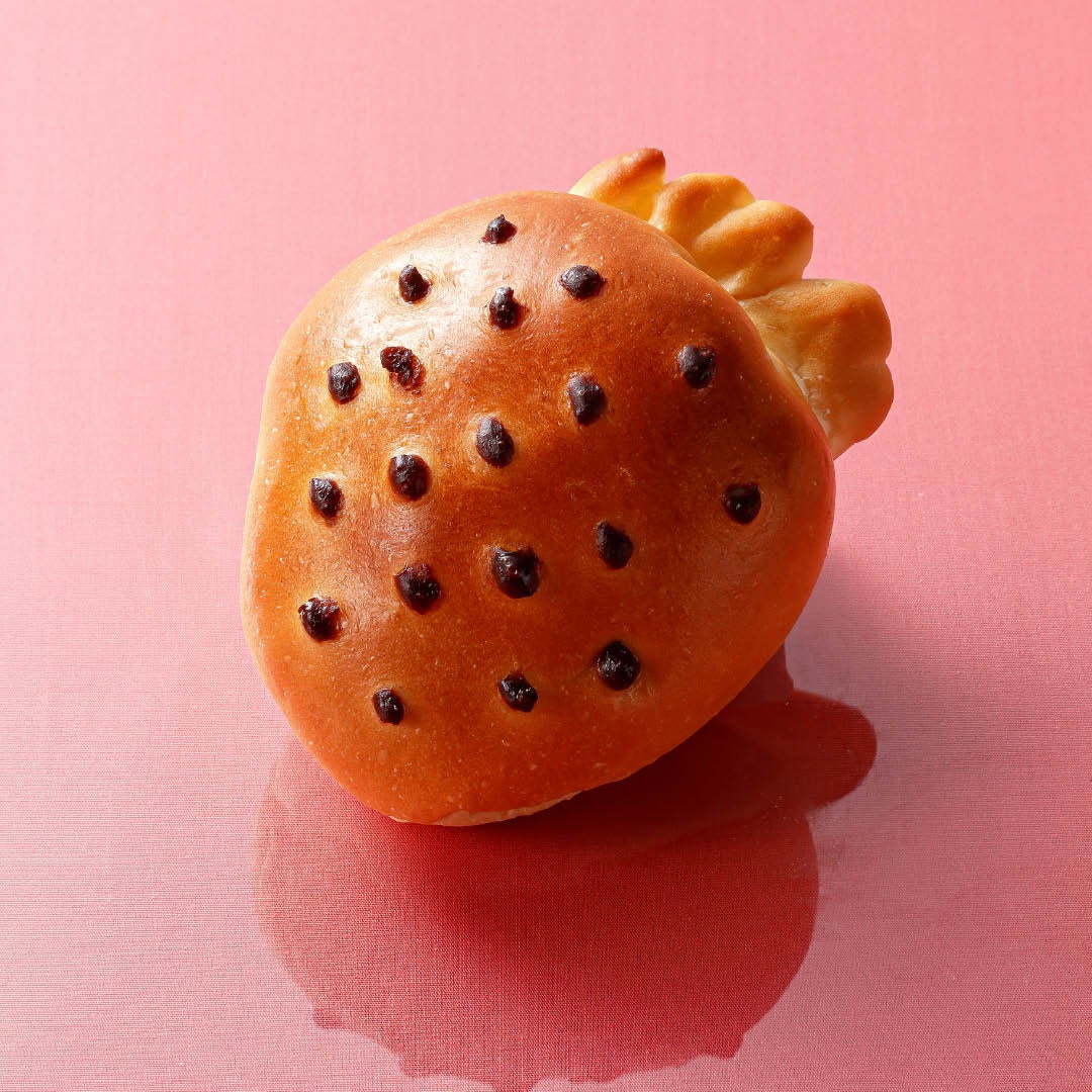 「あまおう苺クリームパン」は、中にいちごクリームを包餡し、いちごのそのものの見た目とチョコで種を表現しました。