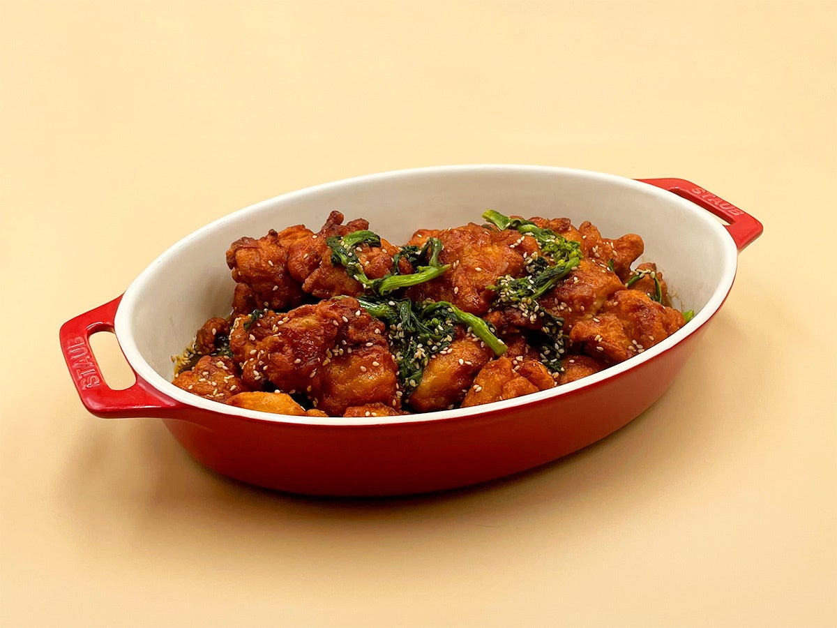 ごろっとした甘酸っぱいお肉とほろ苦い菜の花のシャキっとした食感が楽しめるボリュームたっぷりのメニュー