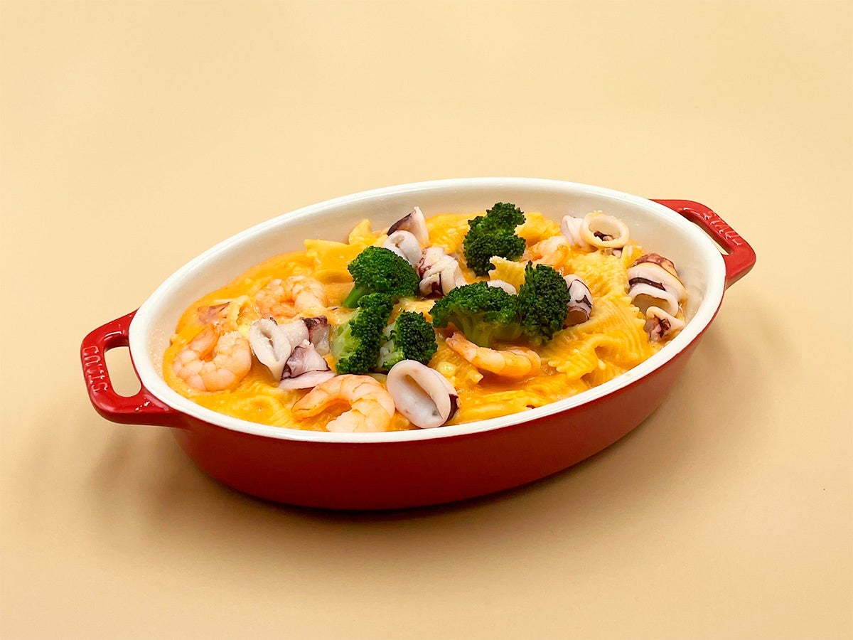 濃厚なチーズクリームソースに大きくてふわふわなマカロニを合わせ、まろやかな味に仕上げました。