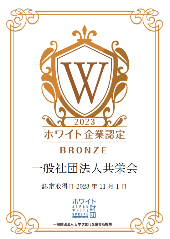 一般社団法人共栄会は2023年11月1日に「ホワイト企業認定 ブロンズランク」を取得されました!