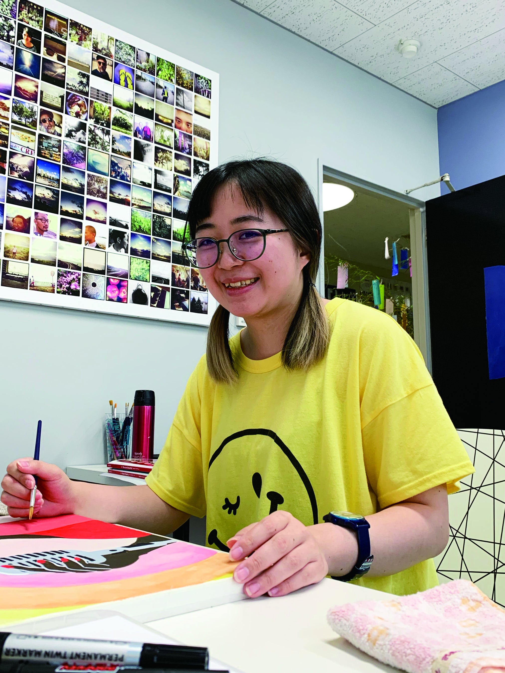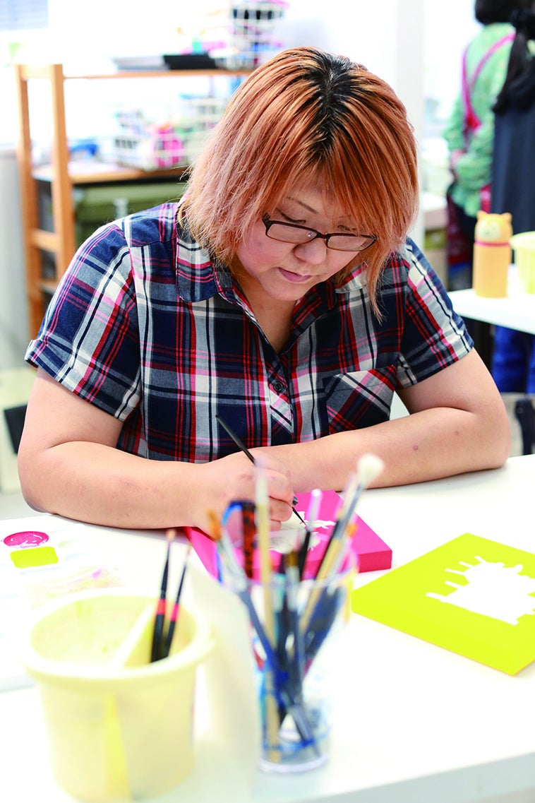 彼女が描く作品は絵画だけにとどまらず、布、粘土、段ボール等色んなものとコラボレートされた作品。その幅広い作風は、彼女の持つ探究心の賜物。彼女の作るアートから目が離せない。