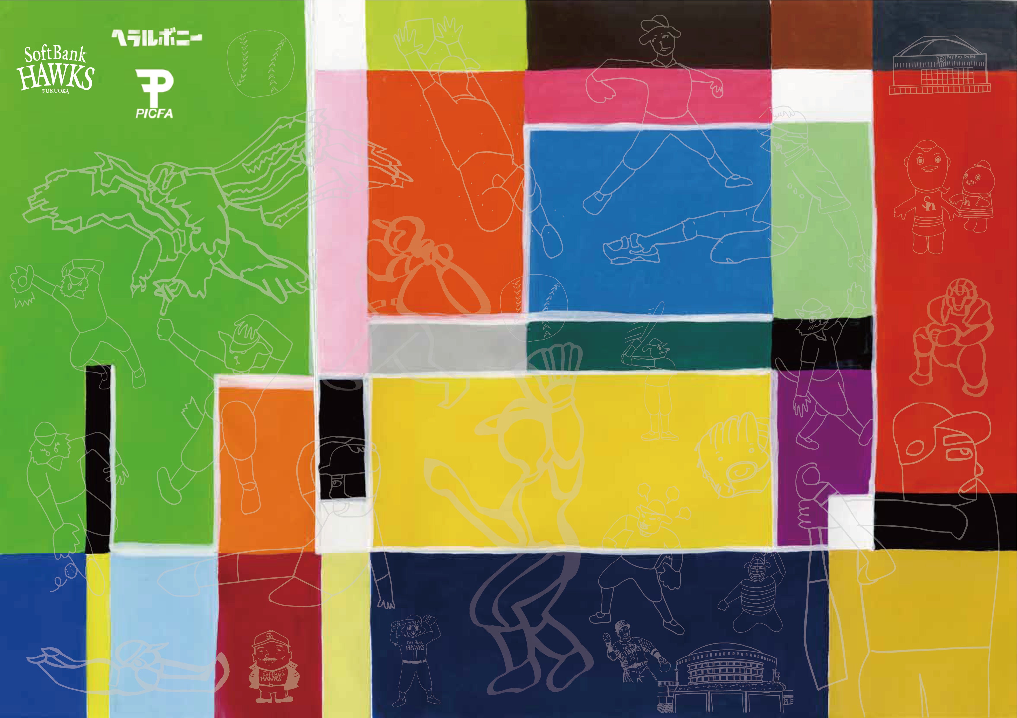 ホークス「ファイト !九州」の取り組みの一つであるアートの力を借りて、たくさんの笑顔を生み出すために発足された「スマイルアートプロジェクト」にヘラルボニーが共鳴し、ヘラルボニーと契約作家であり、佐賀県に拠点をおくPICFAに在籍する10名以上の作家が本プロジェクトに参加しました。