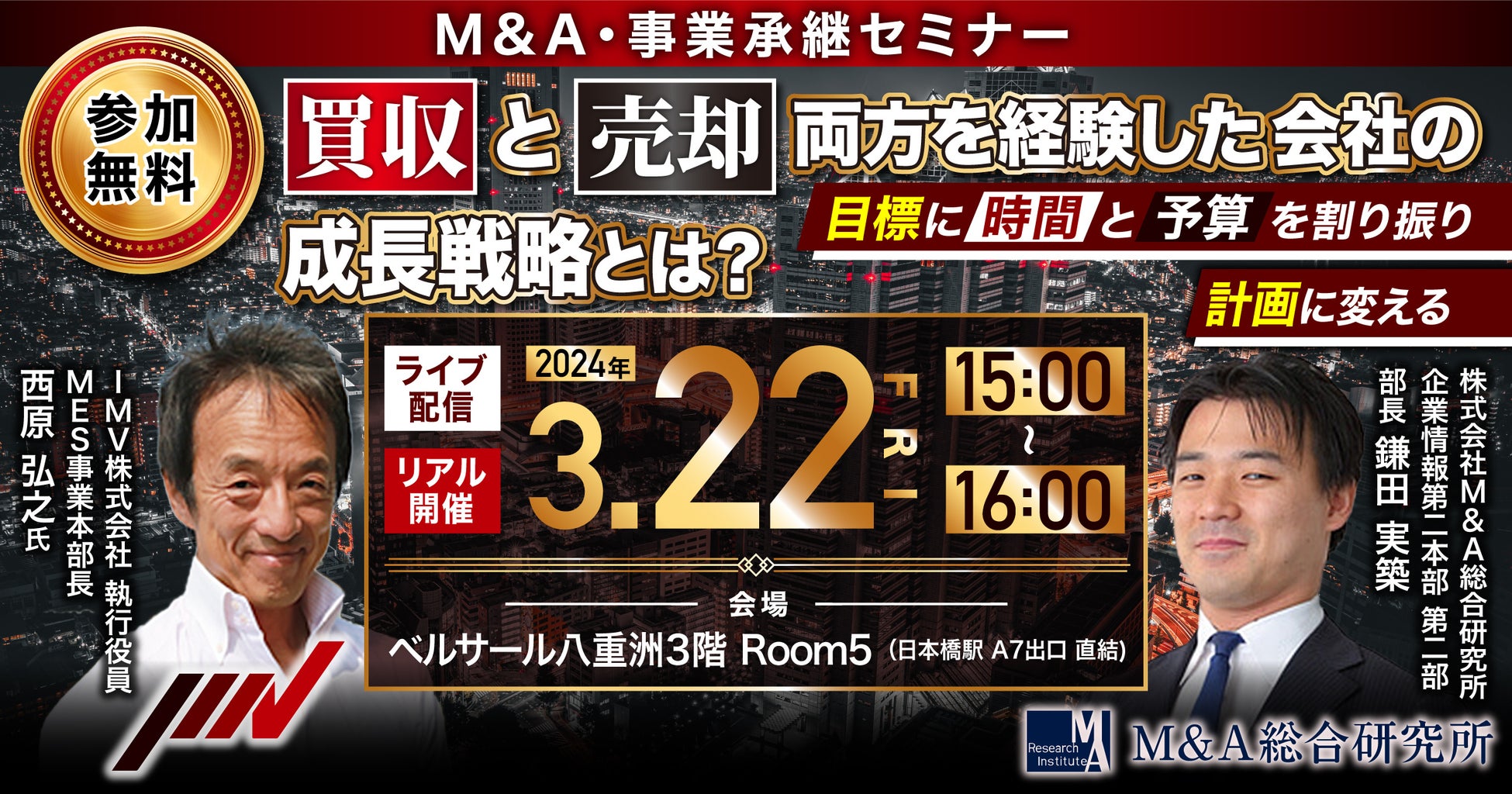 この度、IMV株式会社 執行役員/MES事業本部長の西原弘之様をお招きし、セミナーを実施させていただく運びとなりました。